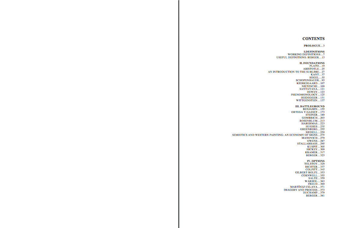 Daniel A. Siedell, Les Manovich, Craig Owens, Julian Stallabrass, Donald Kuspit, Dave Hickey, Hilton Kramer, John Berger, Leo Tolstoy, Gerhard Richter, Frances Colpitt, Jeremy Gilbert-Rolfe, Regina Cornwell, Jerry Saltz, Andy Warhol, Lucian Freud and Marcel Duchamp with expansive commentaries. |